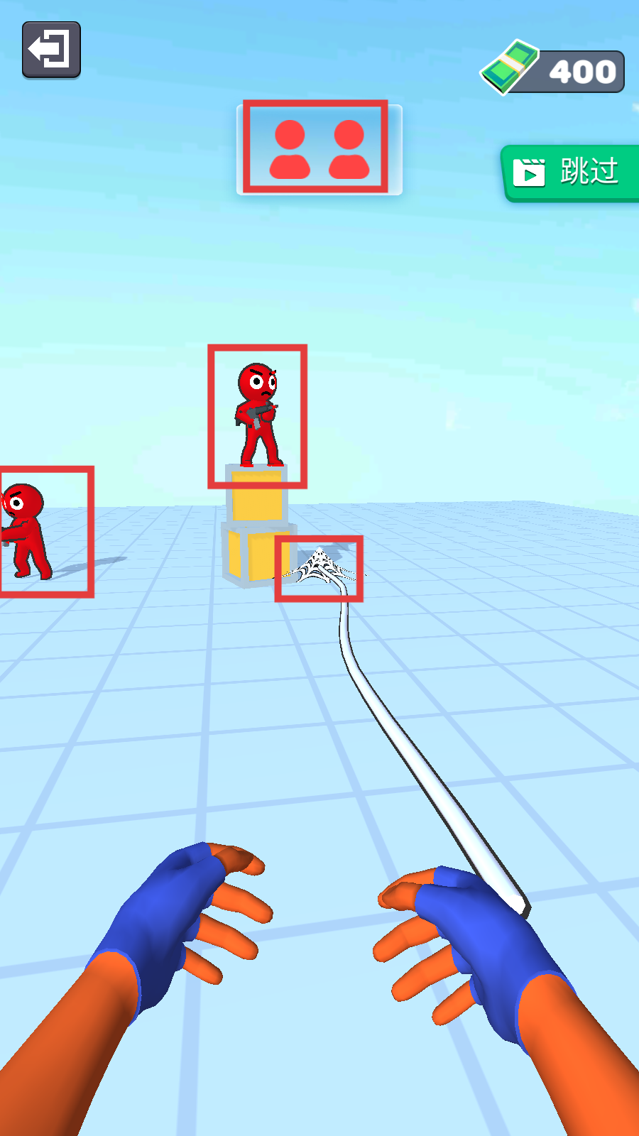 2、关卡内出现红色敌人,按提示【瞄准射击】,长按绘制轨迹攻击,也可点击【跳过】快捷操作。