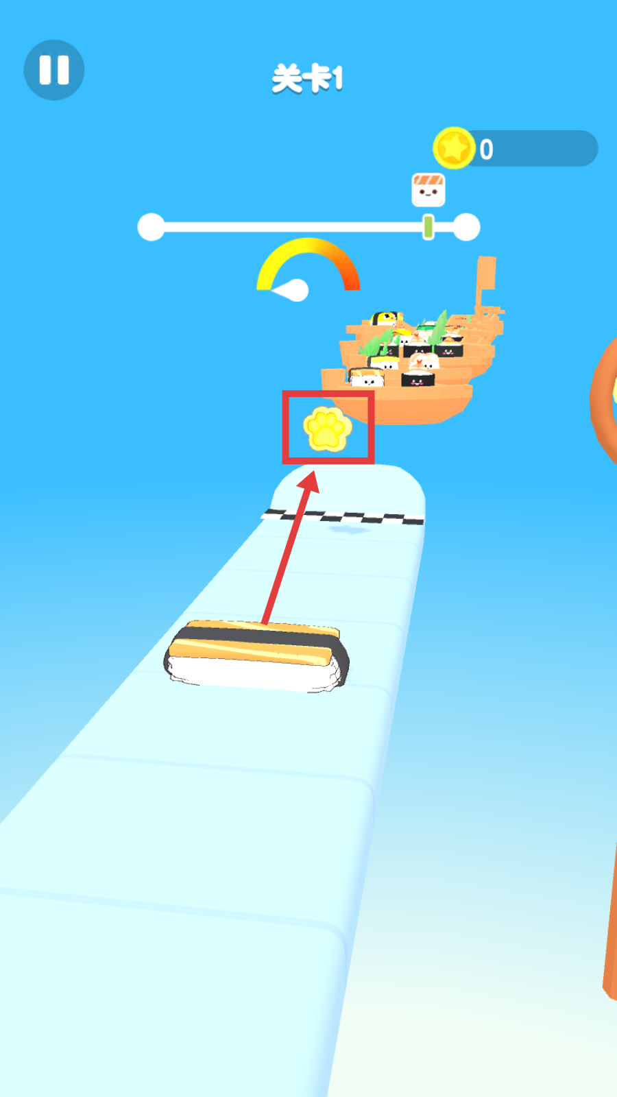 3、接近终点时,优先收集前方【爪印道具】,提升通关评价,留意寿司移动节奏。
