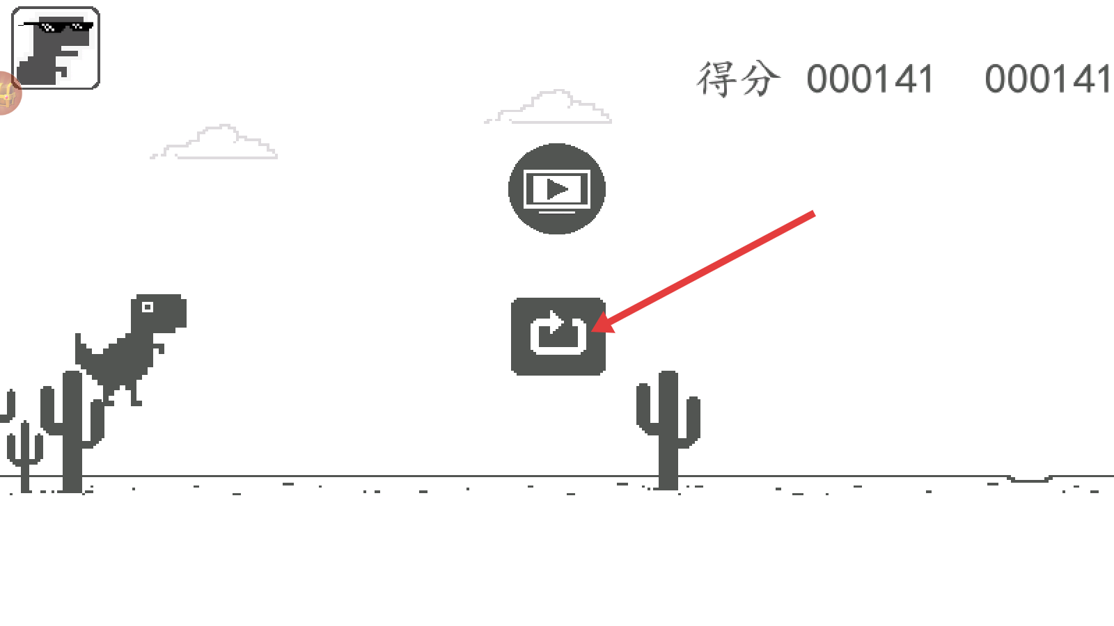 4、游戏结束后,点击重玩图标,重启挑战,尝试突破【得分-000141】现有记录。