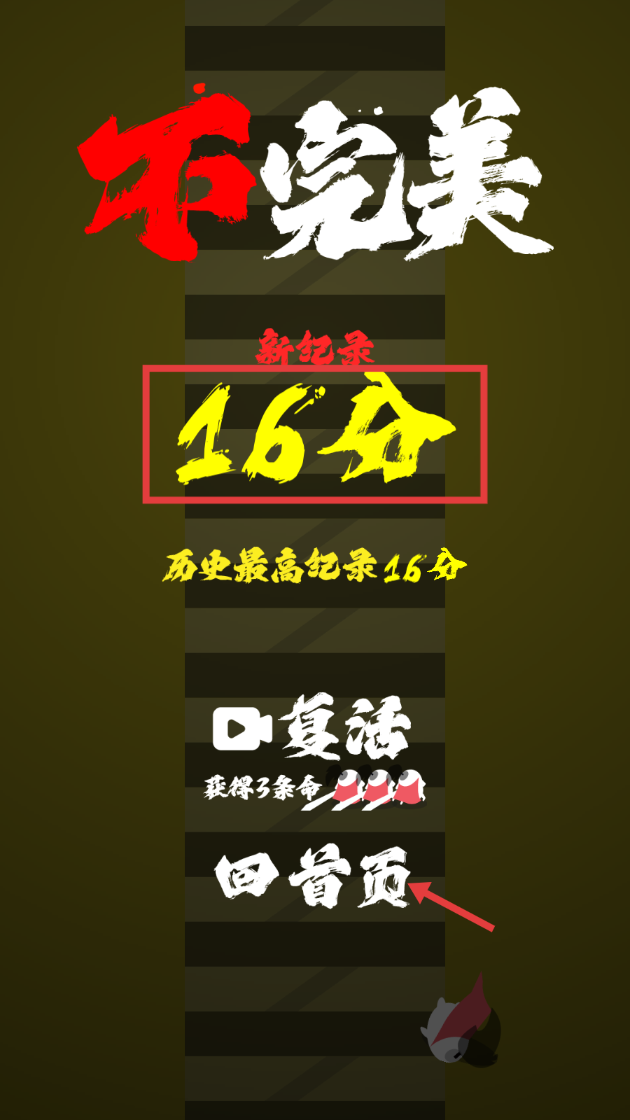 4、结算界面显示【16分-新纪录】,点击【回首页】可重启挑战,或选择复活续玩。