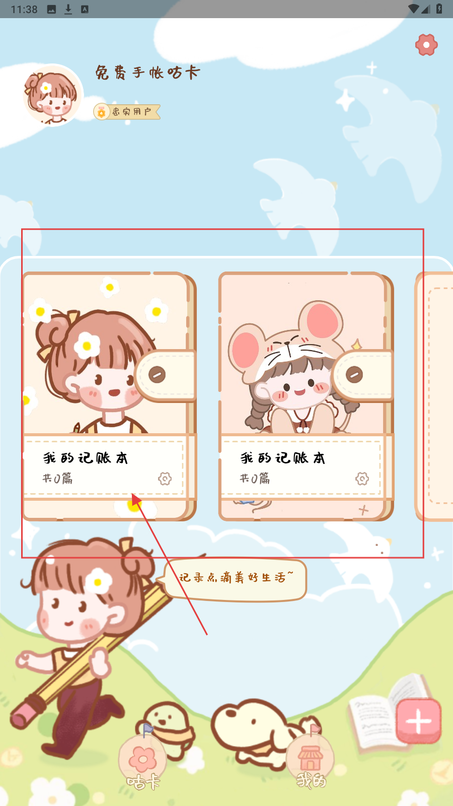 1、在【免费手帐咕卡】页,选手帐本封面,开启创作之旅。
