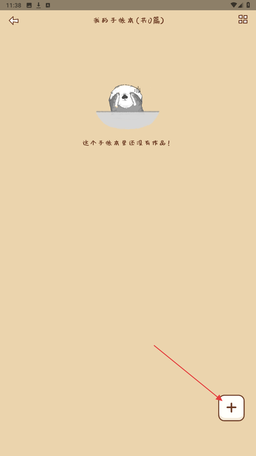 2、进入空白手帐页,点右下角【+】,开始制作内容。