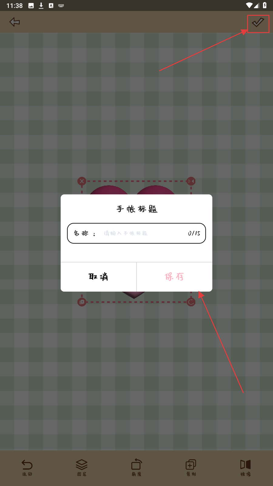 4、完成后点右上角对勾,填标题点【保存】,留存手帐作品。
