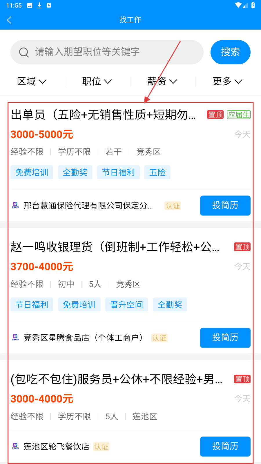 2、在【找工作】页,依据期望薪资、区域等筛选,精准定位心仪岗位,如出单员等。