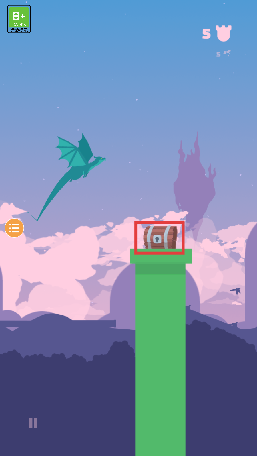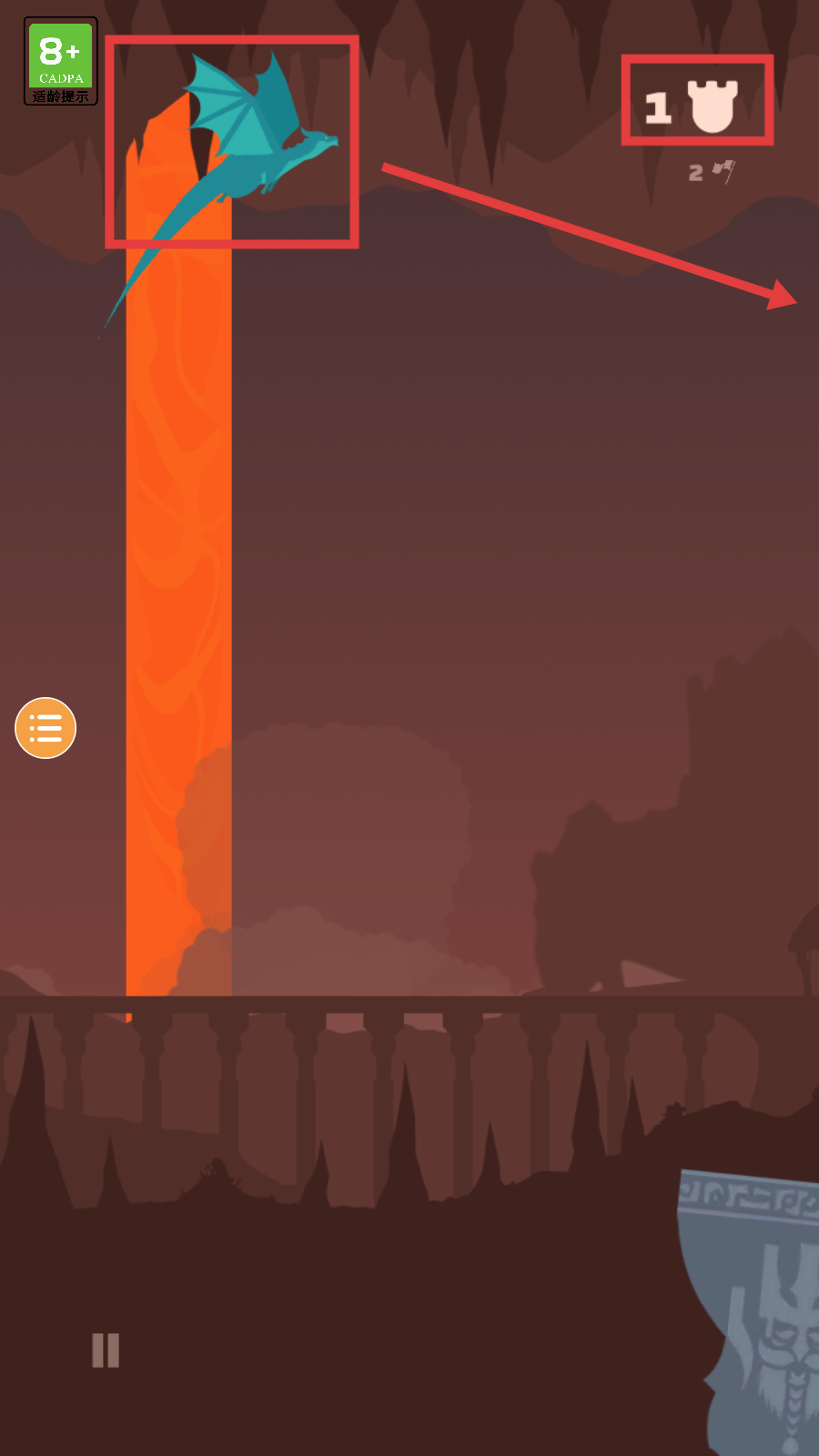 1、核心操控方法:通过点击屏幕控制飞龙移动轨迹,精准回避障碍挑战塔楼穿越安全区域达成基础下坠任务目标。