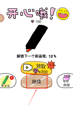 4、领取奖励:完成任务后,点击“继续”领取奖励,解锁新的画笔或获取更多游戏币。