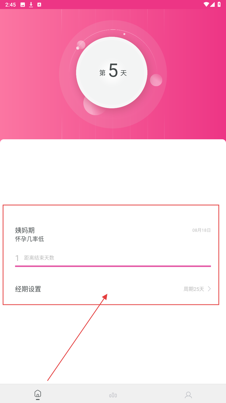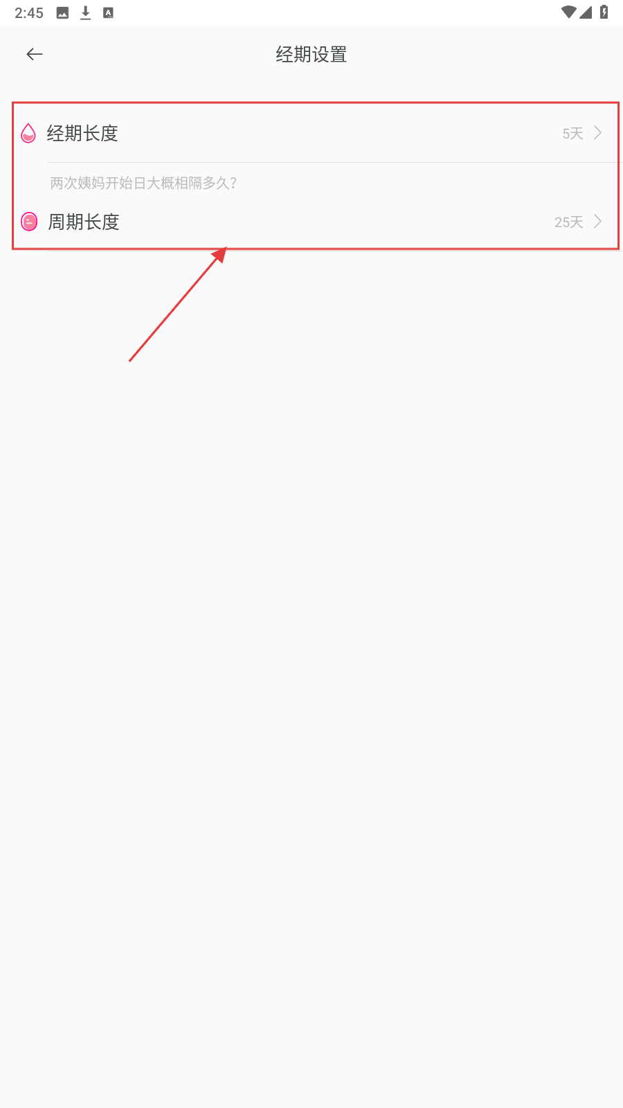 1、在首页点【经期设置】,可调整经期、周期长度,适配自身情况。