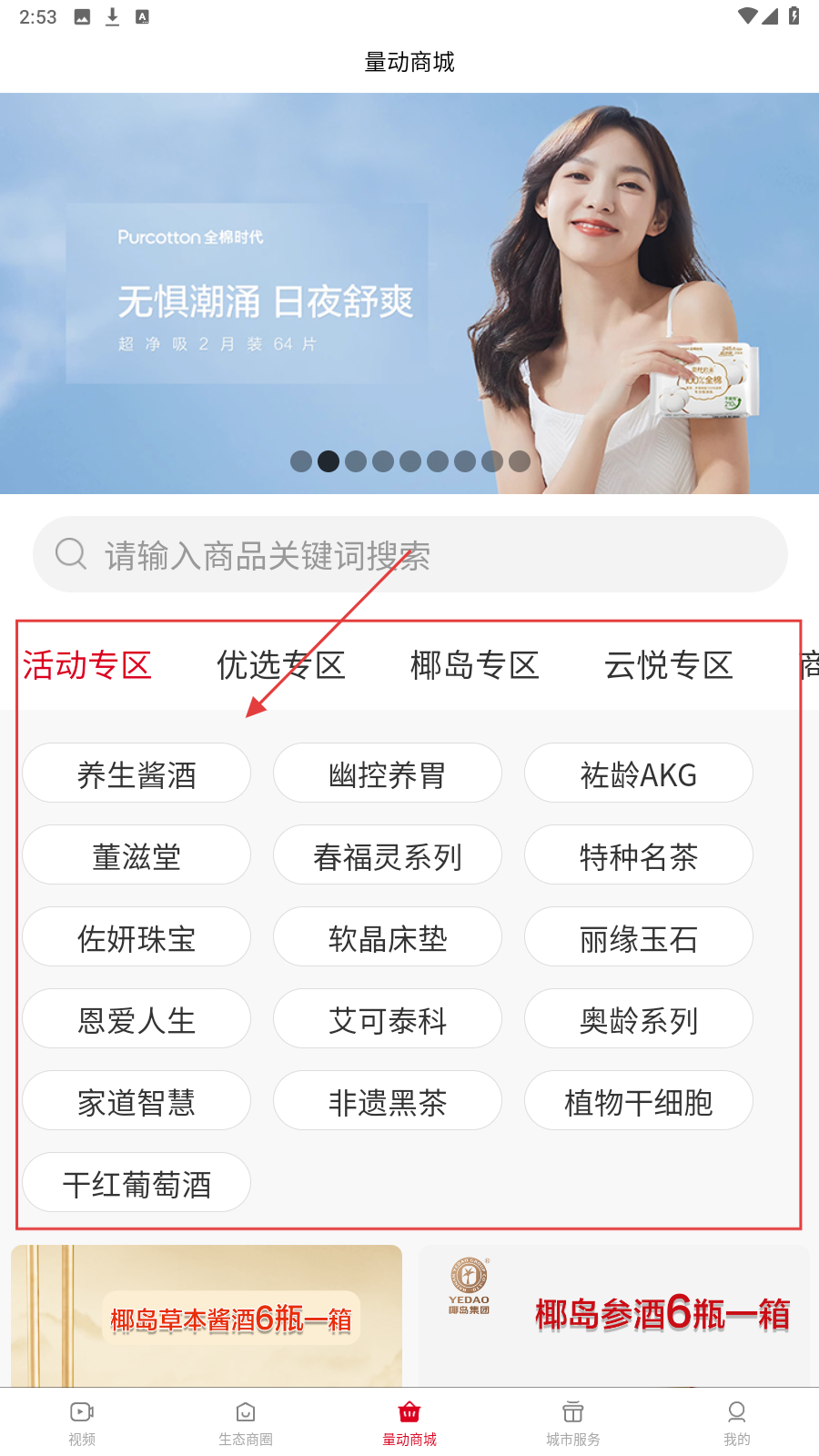 1、进入【量动商城】页面,从活动专区选分类,快速定位心仪商品类型。