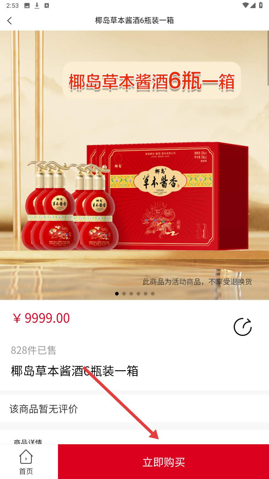 3、决定购买就点【立即购买】,按流程完成椰岛酱酒下单操作。