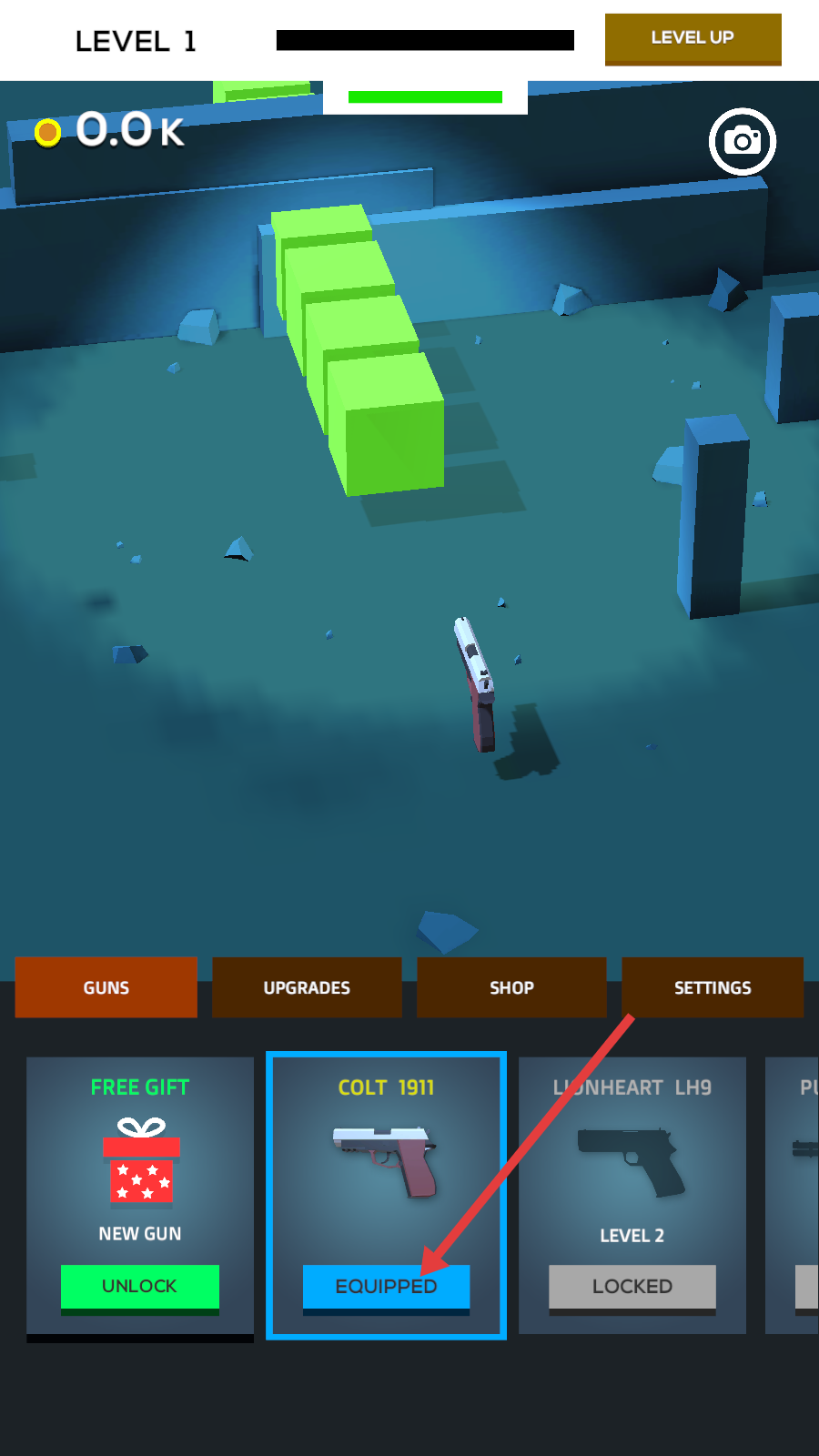 1、在武器界面装备【COLT-1911】手枪,点击进入LEVEL-1关卡,开启射击冒险。