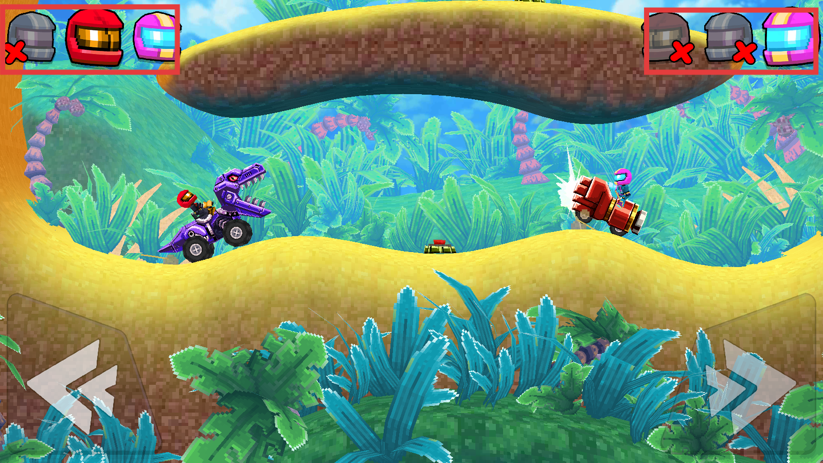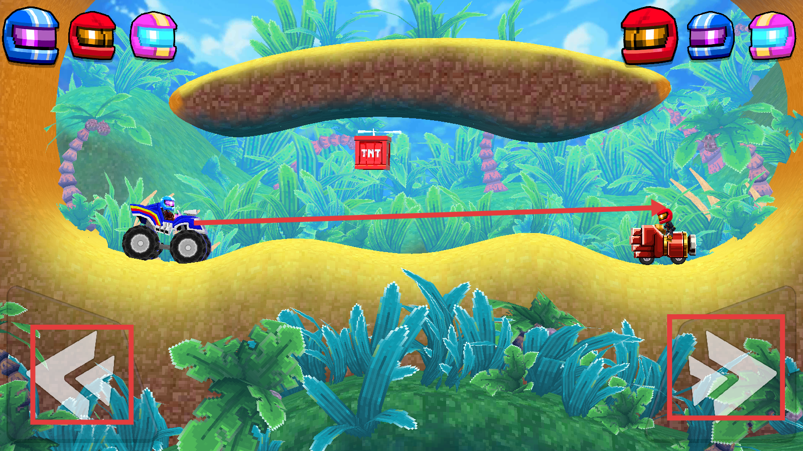 2、比赛中通过左下角左箭头、右下角右箭头操控战车,留意场景【TNT】道具,借其冲击干扰对手。
