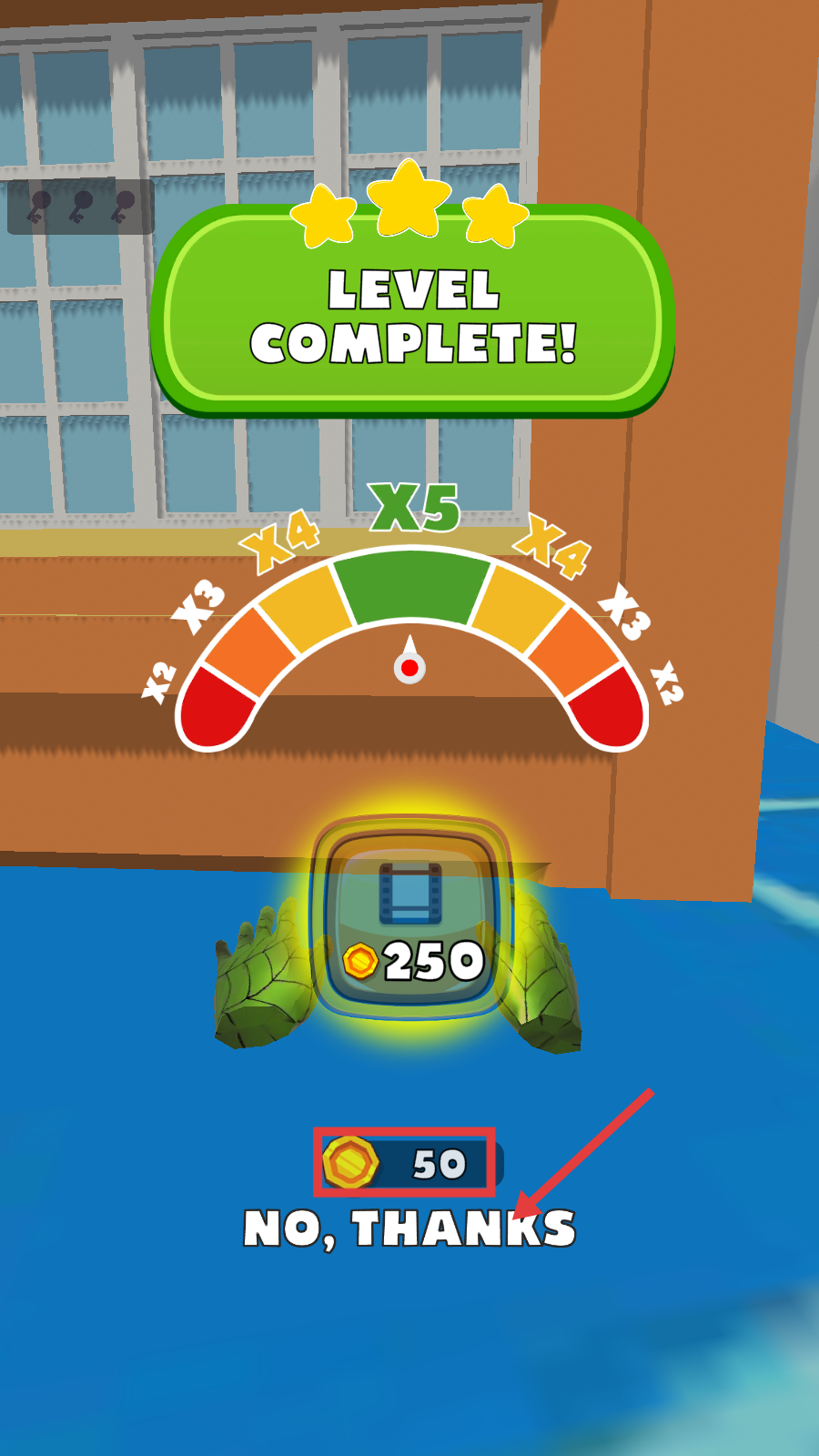 4、关卡结束若拒额外奖励,点击【NO,-THANKS】快速返回,规划后续关卡挑战。