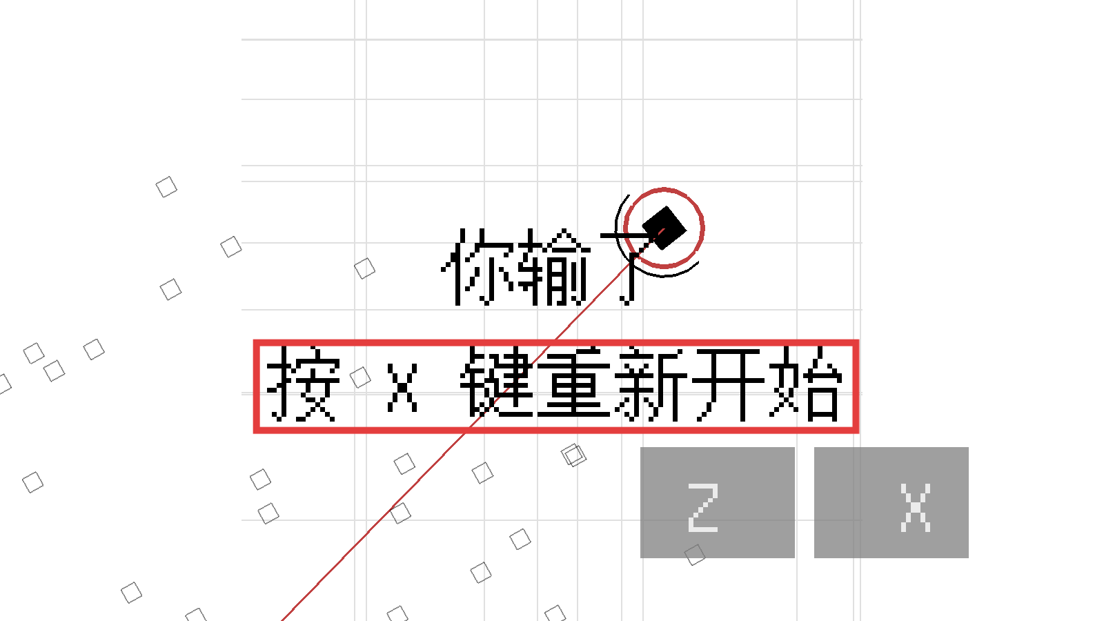 4、战局失利显示【你输了】,按提示【按X键重新开始】,重置战局再挑战。