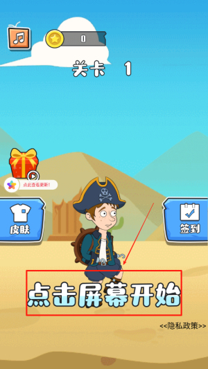 2、开始游戏:在游戏主界面,点击“点击屏幕开始”按钮进入游戏。
