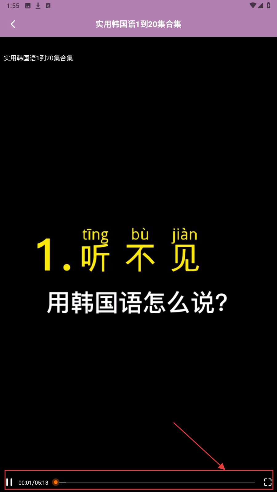 4、播放口语视频,跟读“听不见”等内容,练习韩语口语应用。