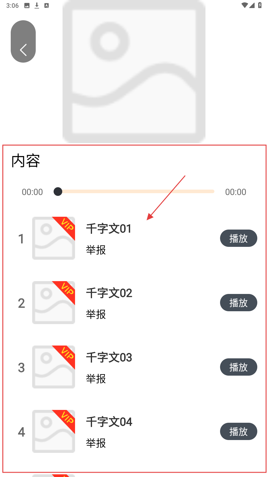 4、如点【千字文】进入播放页面,点击右侧【播放】,听启蒙千字文音频。