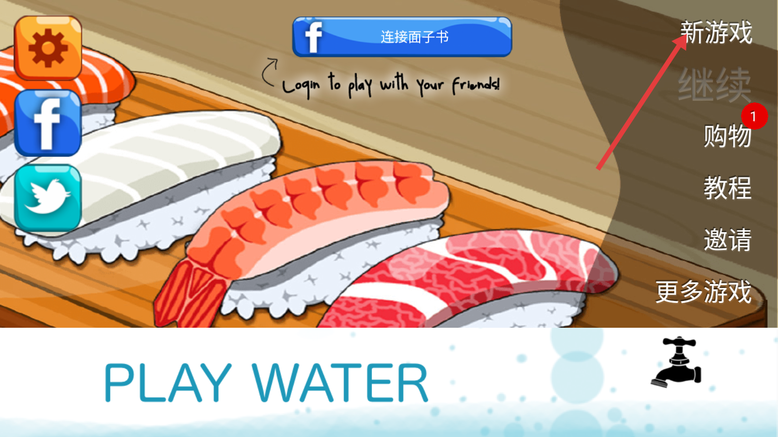 1、点击界面右侧【新游戏】开启寿司店经营,暂可忽略社交连接,优先进入游戏熟悉基础流程。