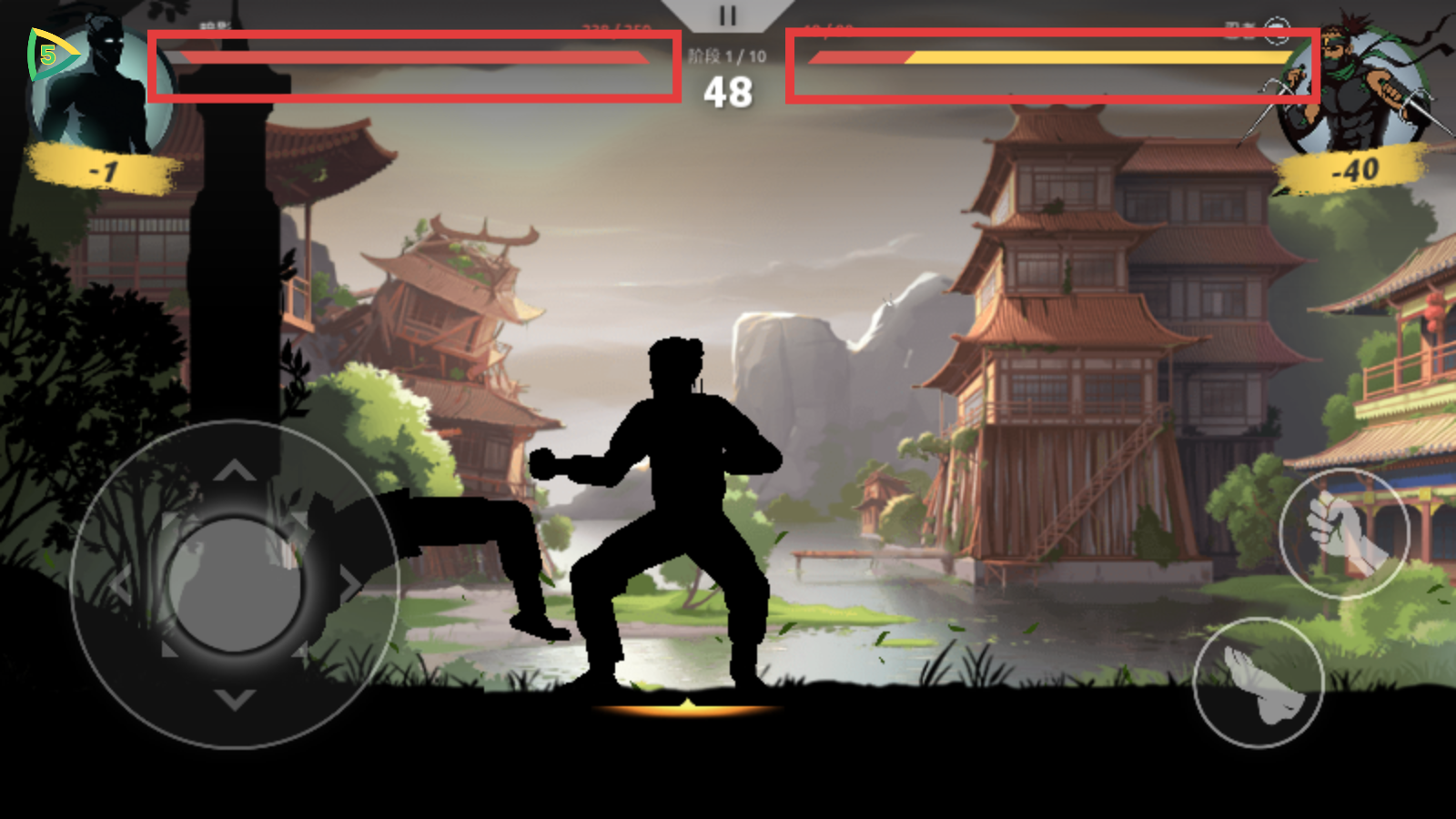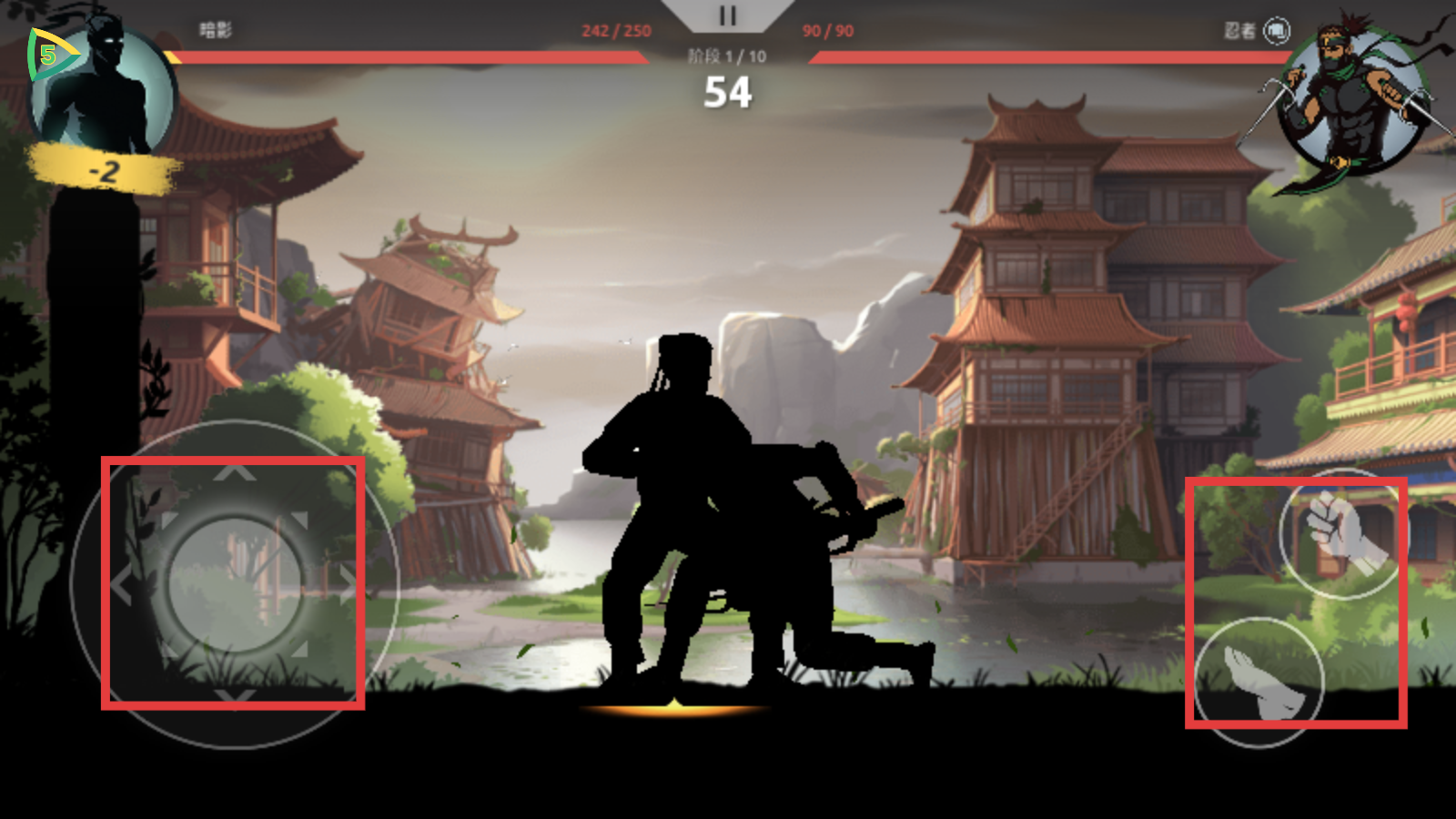 2、战斗中用左侧【虚拟摇杆】移动,右侧【拳-掌】按钮释放攻击或防御,熟练操作机制。