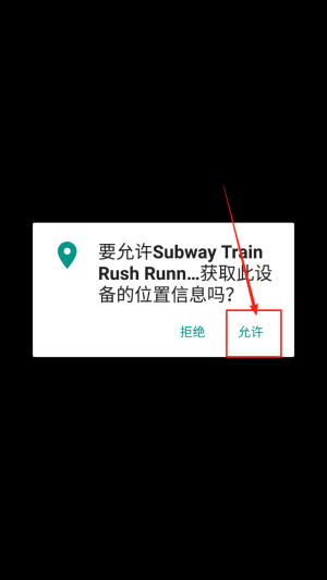 1、授权位置:在“地铁火车奔跑者”请求位置权限时,点击“允许”继续游戏。