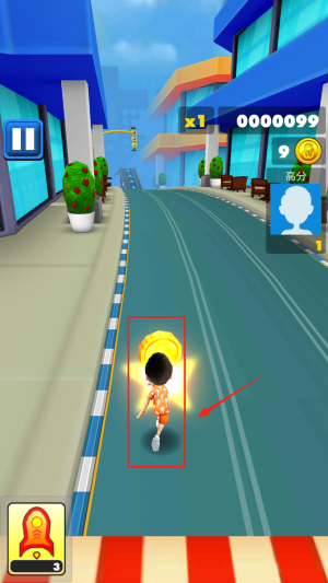 2、操控角色奔跑:控制角色在轨道上向前冲刺,灵活转向切换轨道,保持奔跑节奏不中断,适应极速状态。