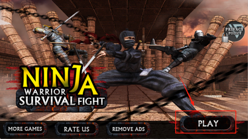 2、进入主菜单:在“NINJA WARRIOR SURVIVALFIGHT”主界面,点击“PLAY”开始游戏。
