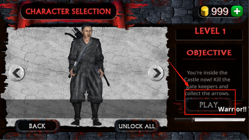 4、开始闯关:阅读关卡目标提示后,点击“PLAY”即进入城堡,准备击杀守门人并收集箭矢。