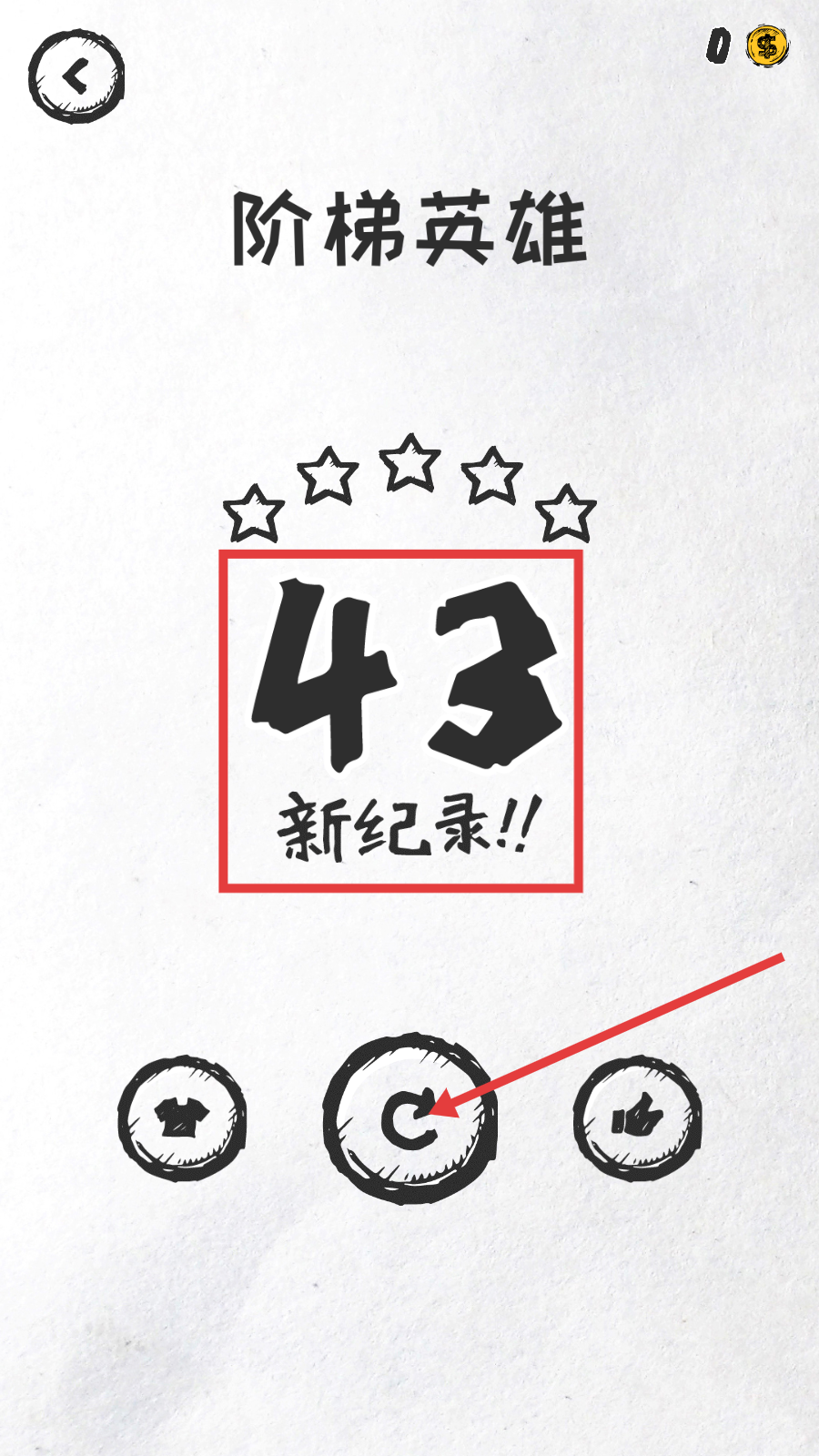 4、达成【43-新纪录】后,点击重玩按钮,优化跳跃路线,冲击更高攀登层数刷新成绩。