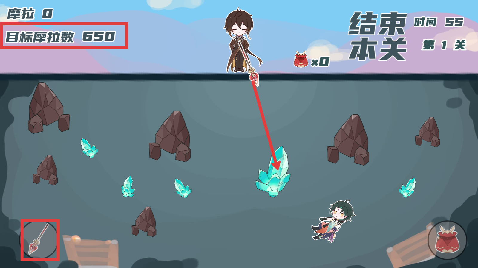 2、留意【本关目标-650】摩拉数值,明确采集任务,规划采矿节奏。
