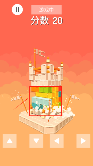2、操作控制积木:在游戏进行中,使用屏幕下方的左右箭头按钮来控制积木移动。