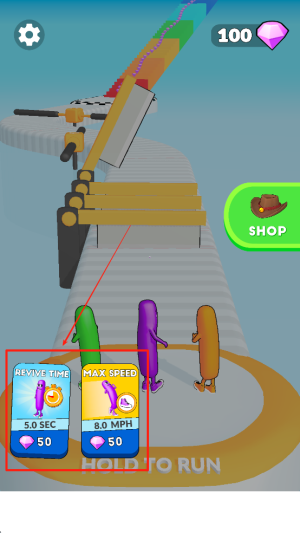 4、升级能力:在游戏结束后,使用获得的钻石升级角色能力,如“REVIVE TIME”和“MAX SPEED”。