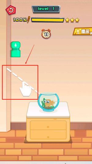 4、完成闯关任务:成功将水引入鱼缸救活鱼儿,完成关卡挑战,解锁更多谜题,收获解谜乐趣。