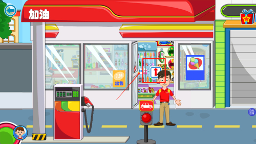 4、完成交易:加油完成后,点击商店门进入,模拟结账过程。