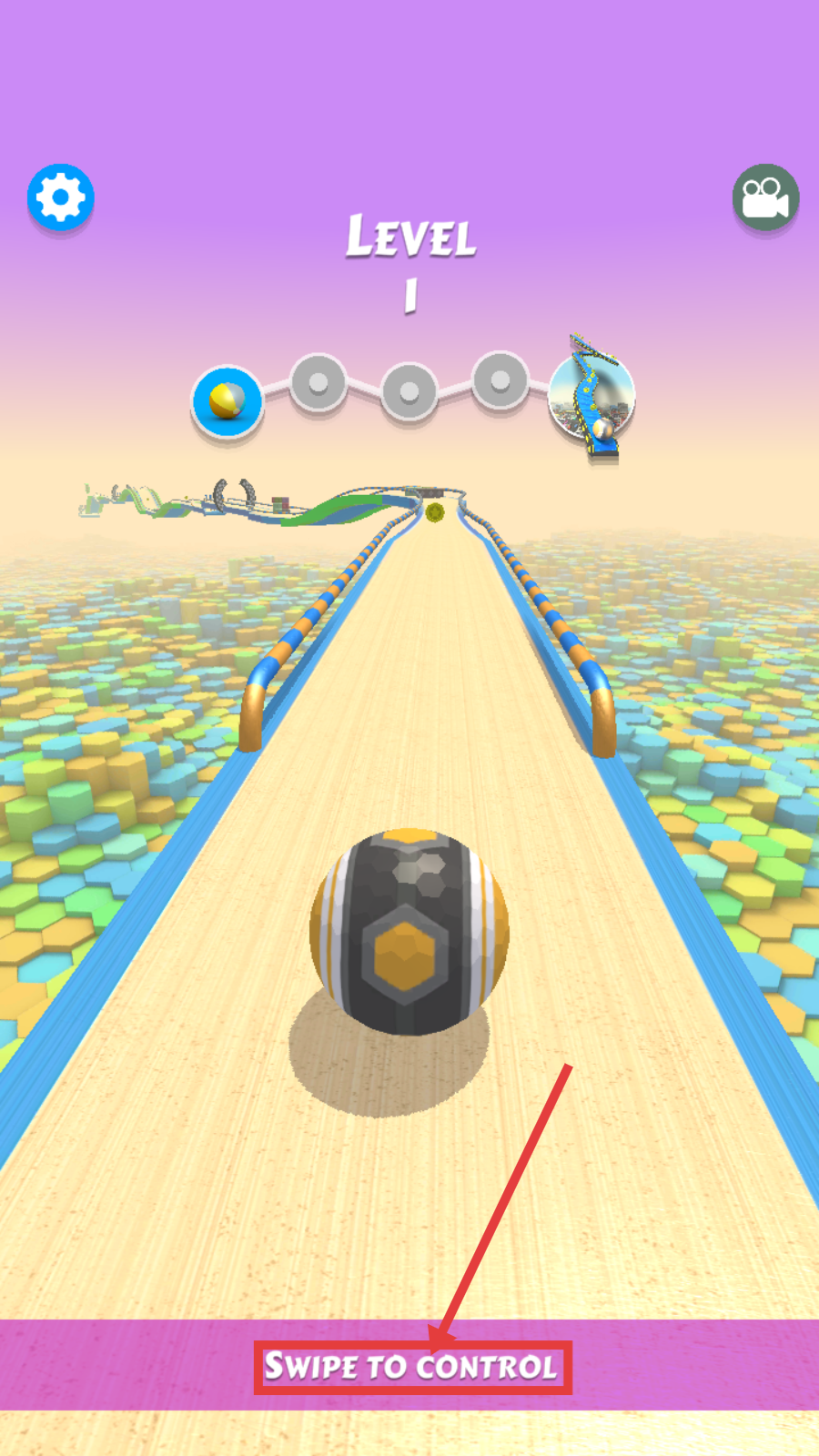1、进入【Level1】,通过【滑动屏幕】控制球体左右移动,适应轨道操作。