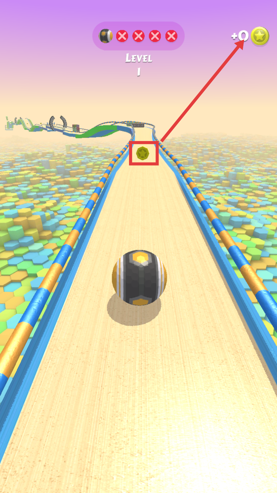2、沿轨道前行时,优先收集【金色硬币】,积累右上角星星积分。