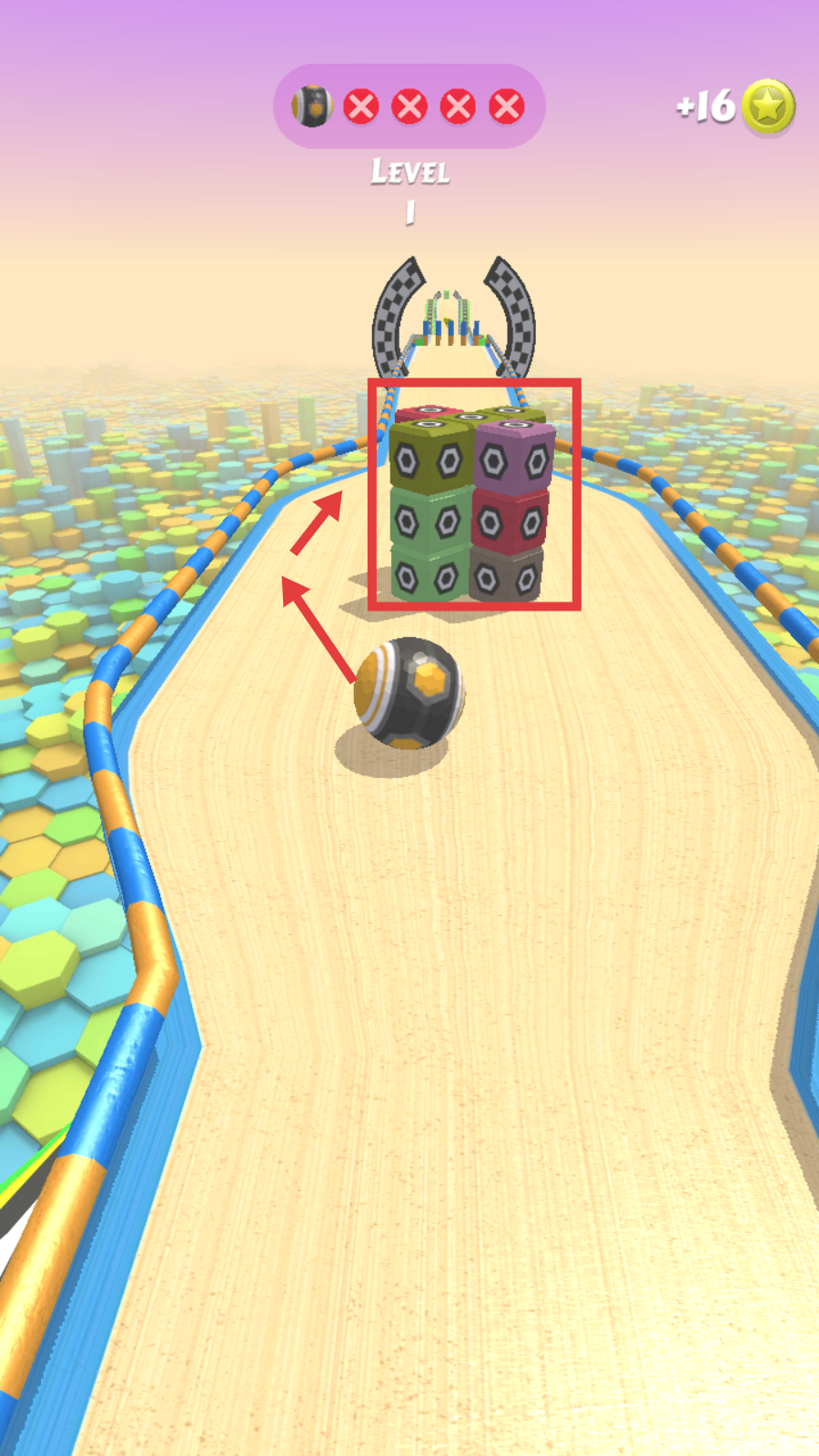 3、遇到【彩色方块堆】,操控球体撞击破坏,推进关卡进程。