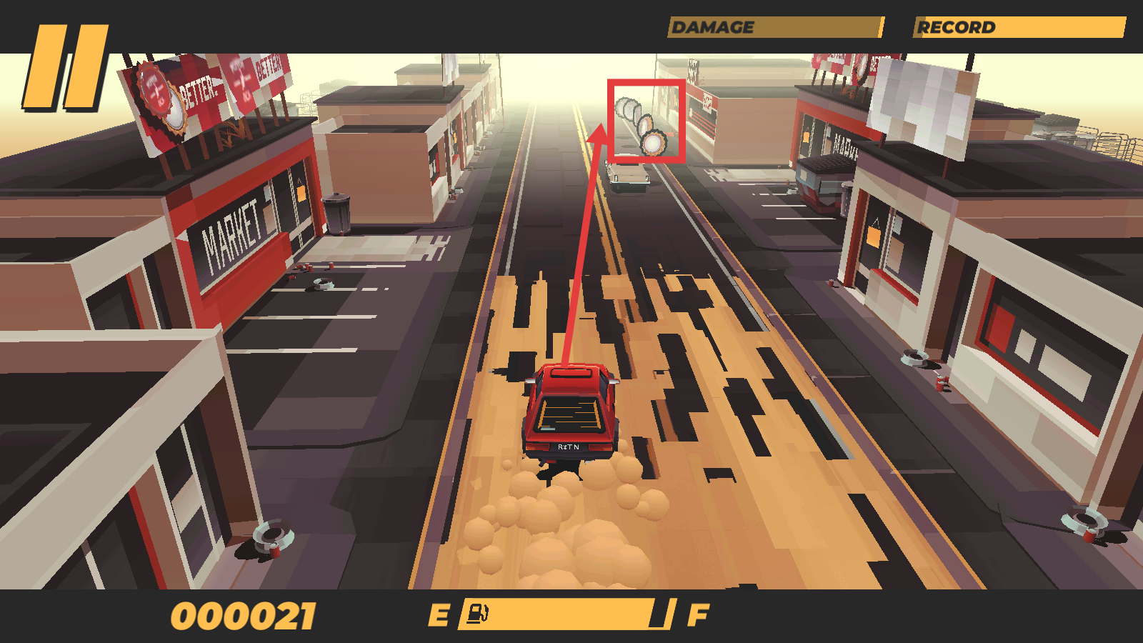 3、行驶中收集【轮胎道具】,提升车辆性能或积分,推进距离突破【26】纪录。