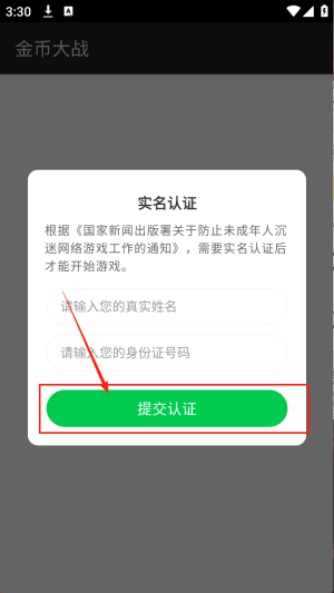 2、在“实名认证”页面依次输入真实姓名与身份证号码,确认无误后点击“提交认证”。