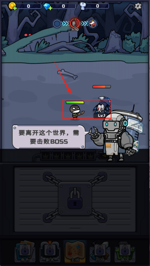1、阅读“要离开这个世界,要击败BOSS”剧情提示后,轻触屏幕任意位置继续。