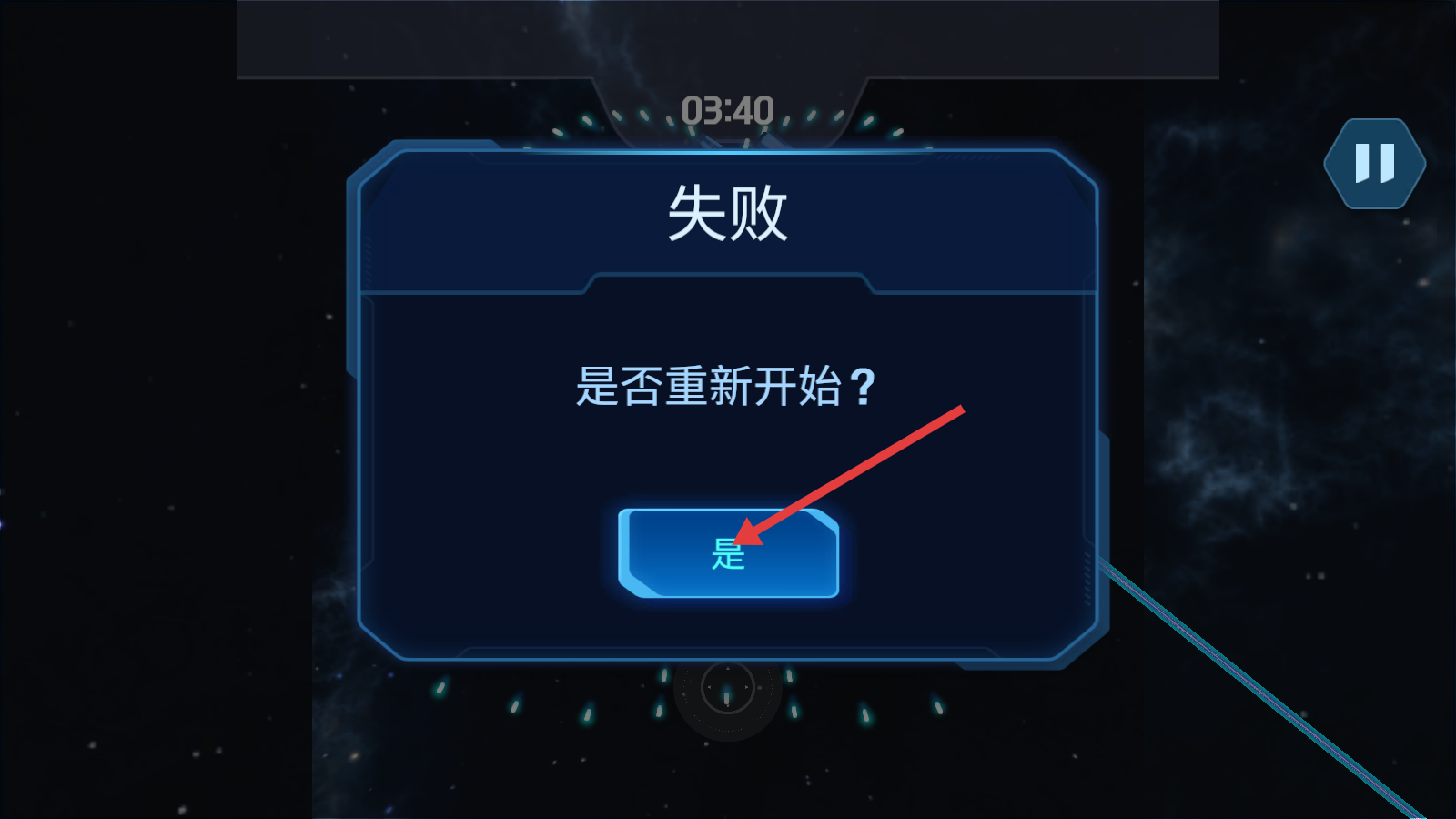4、挑战失败后点击弹窗【是】按钮,重新开启Level-1关卡,再次尝试突破战局困境。