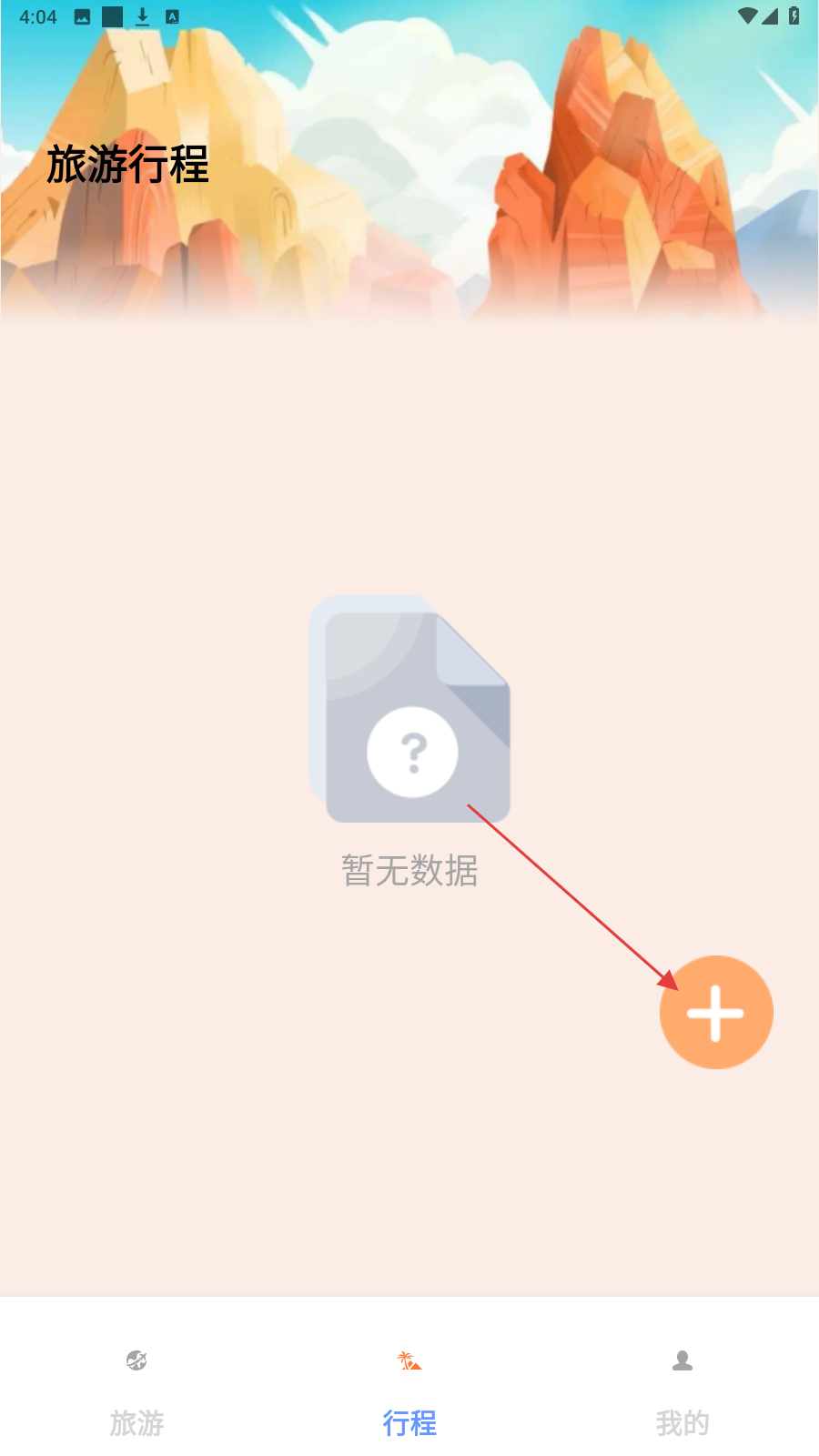 3、切换到【行程】页面,点【+】创建行程。