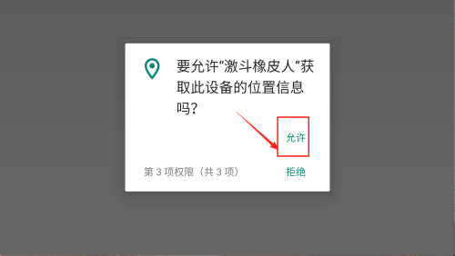 3、当弹出“允许激斗橡皮人获取设备位置信息”时,选择“允许”完成权限授权。