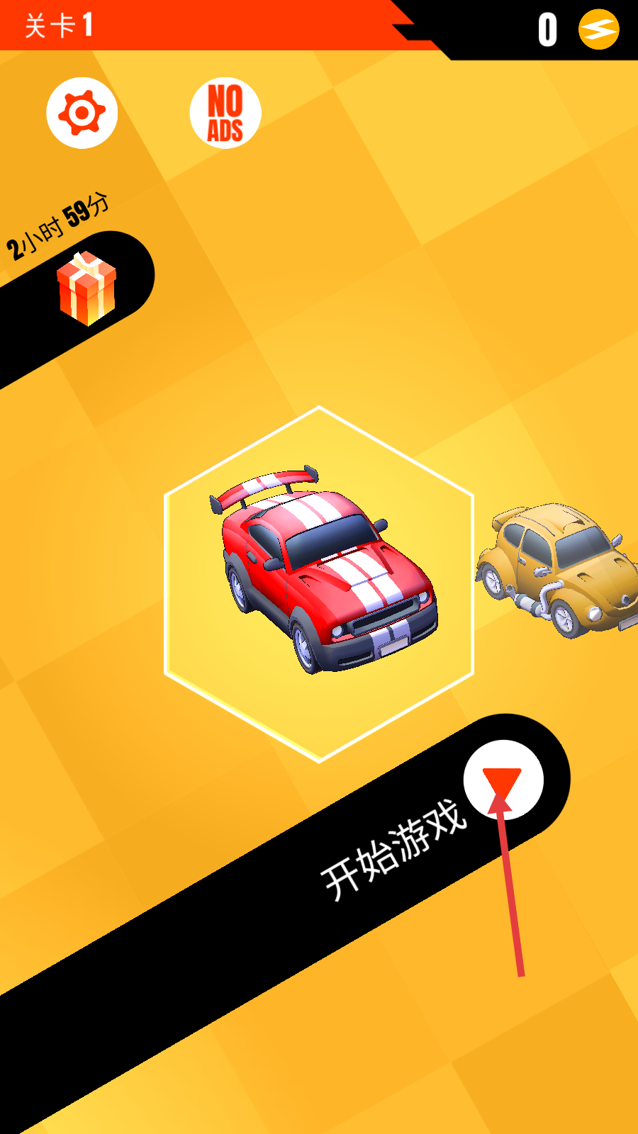 1、关卡1选择【红色赛车】,点击【开始游戏】按钮,正式开启赛道挑战之旅。