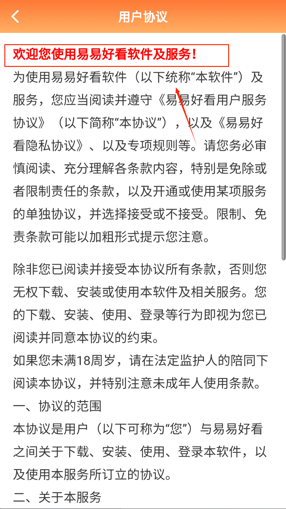 2、第一次用会遇到用户协议页面,白色背景黑色字很清晰,重点内容都加粗了,记得要看完再勾选同意哦,不然没法继续使用呢。
