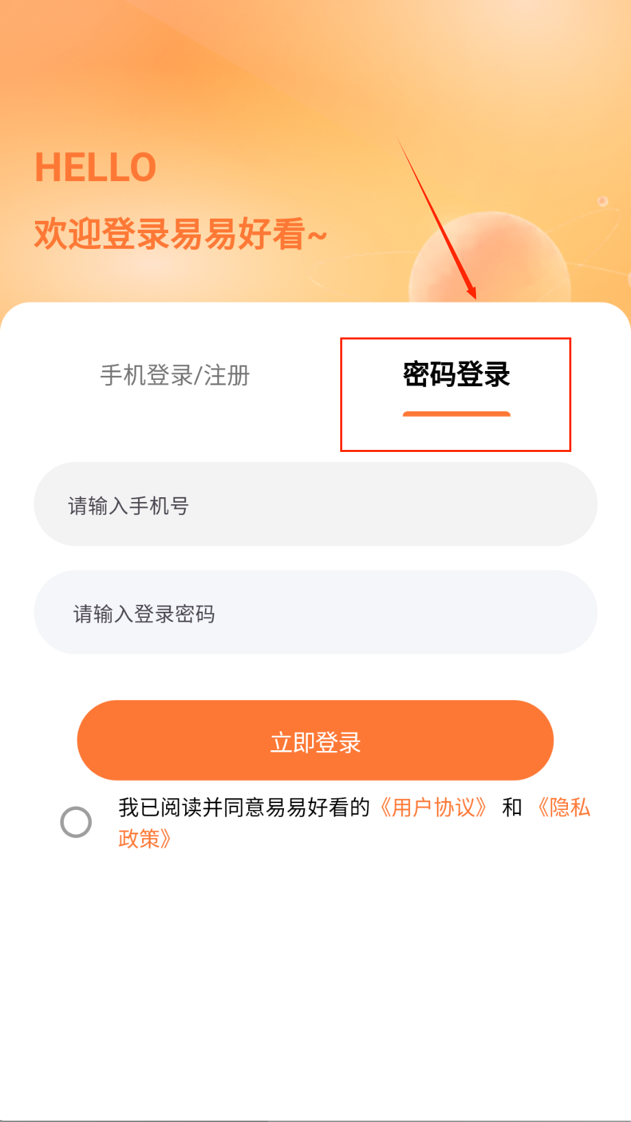 4、想用密码登录也很方便,在登录方式那里切换一下,输入注册时的手机号和密码就行啦,记住密码的话下次就不用再输了。