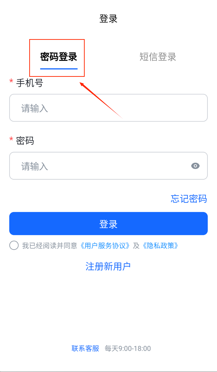 2、登录可选密码或短信方式呀,输完手机号获取验证码填好,别忘了勾选协议再点蓝色登录按钮哦。