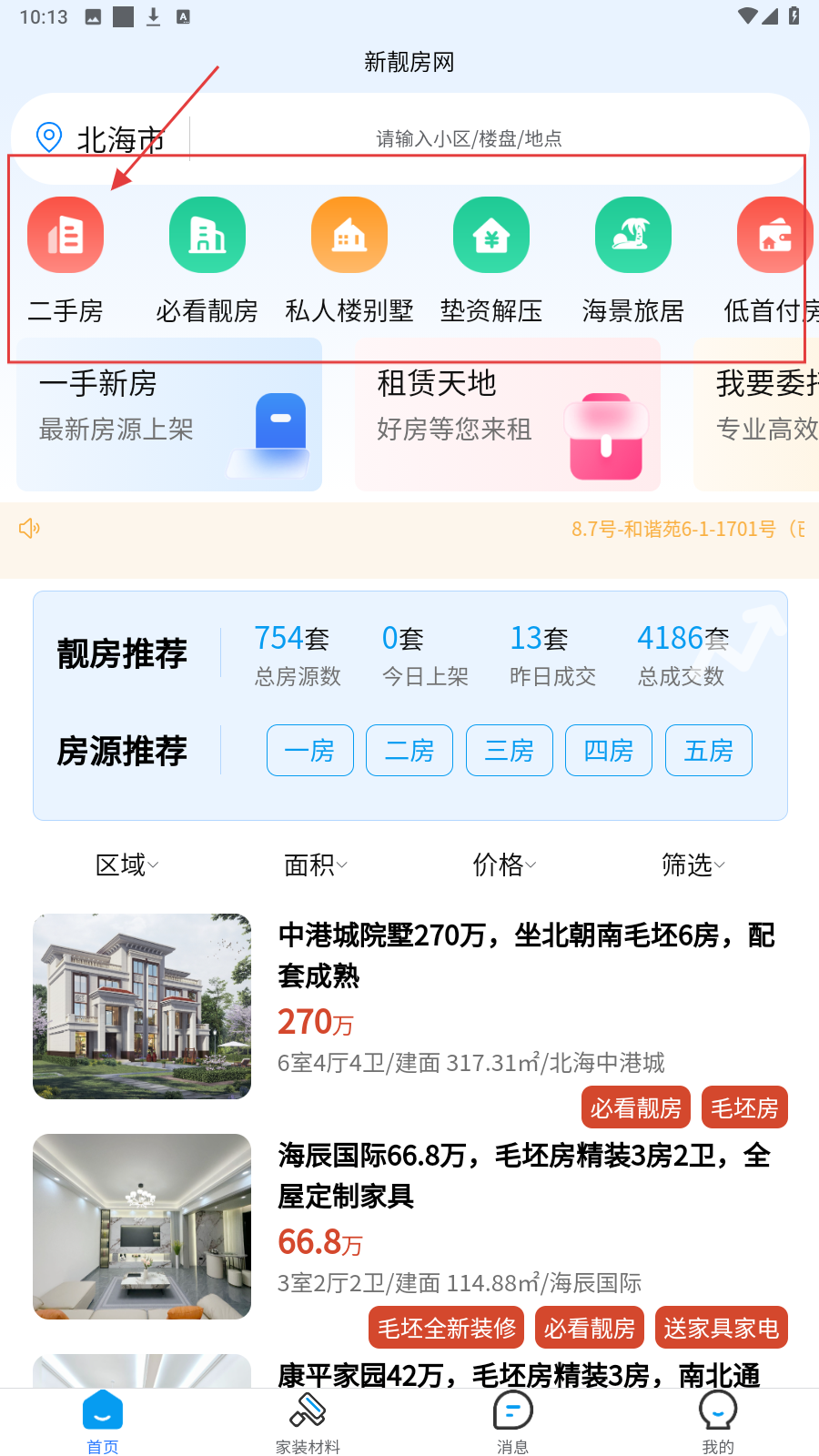 1、进入【新靓房网】,选房产类型(如二手房),用筛选找心仪房源。