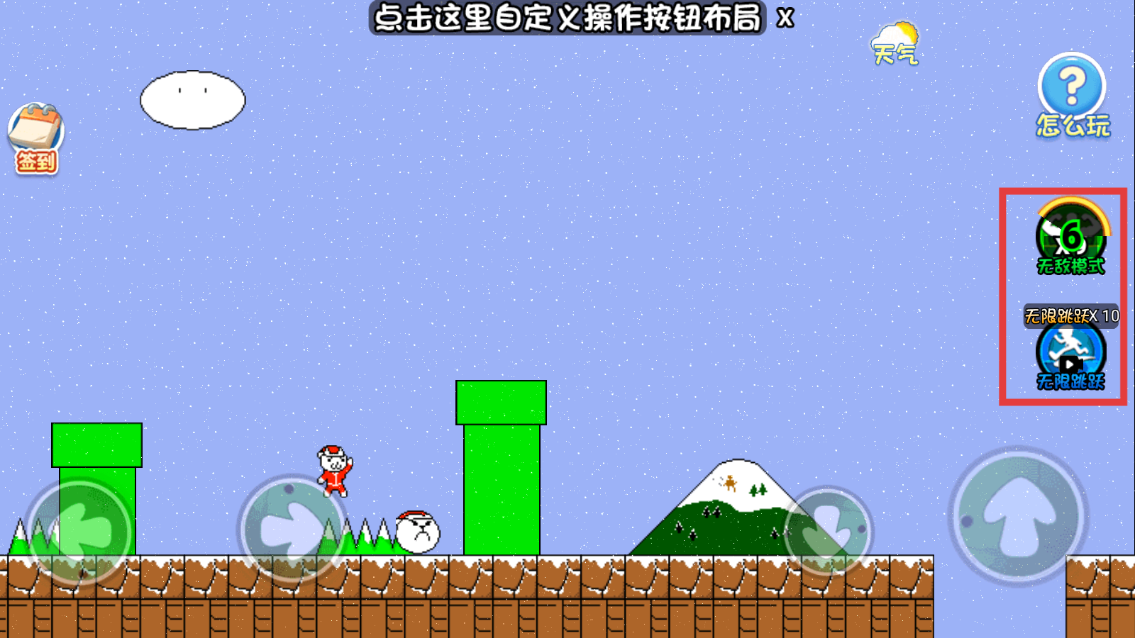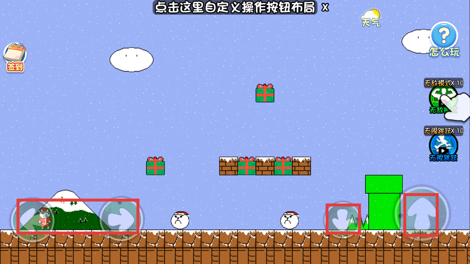 2、熟悉界面【左移-右移】【下蹲-跳跃】按钮,可点击顶部自定义布局,适配操作习惯。