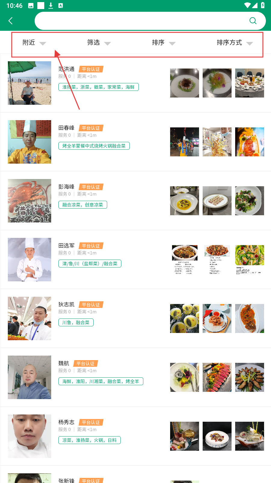 2、找厨师时,可以点【附近】【筛选】,缩小搜索范围精准找。