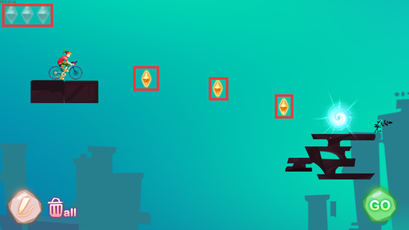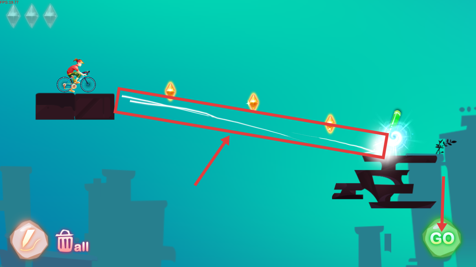 3、绘制白色线条搭建骑行路径,连接起点与终点,覆盖钻石位置,点击【GO】启动。