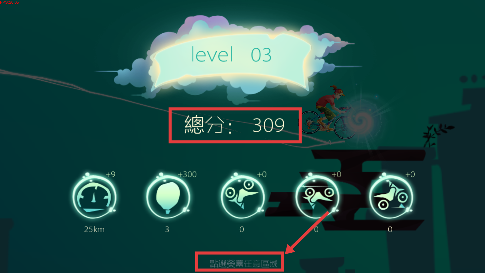 4、通关后查看【总分:309】,点击屏幕任意区域,进入下一关继续挑战。